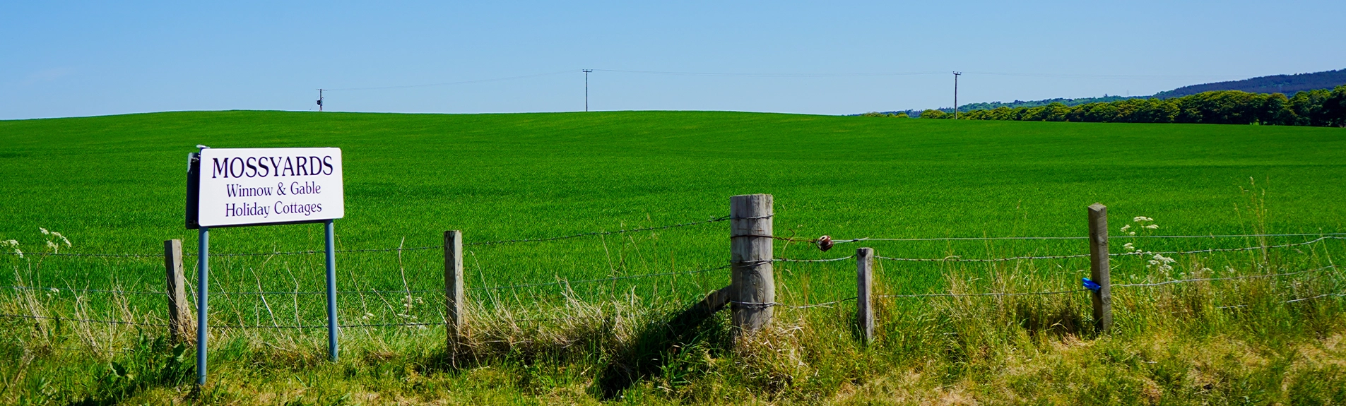 Take the Burghead turn-off from the A96, west of Elgin, and follow the B9013 for about 3 miles to the College of Roseisle crossroads. Turn right towards Duffus for just over one mile. We’re the first house on the right with a big white sign, “Mossyards Holiday Cottages.” SatNav will get you close but can be a little off on the exact pinpoint. The best way to find us is on Google Maps as Mossyards Holiday Cottages.